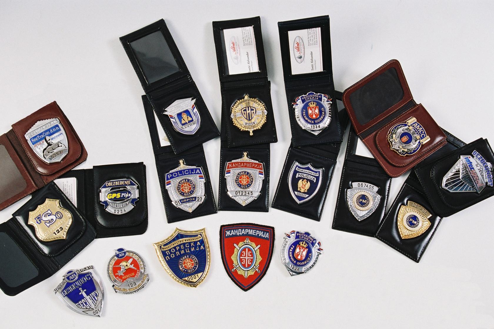 Legitimacije predstavljaju zvanični dokument institucije ili preduzeća i zato se ne mogu izrađivati za fizička lica. Značke isključivo služe kao legitimaciono sredstvo institucije ili preduzeća, čiji zaposleni po zakonu imaju obavezu da ih nose. Legitimacija može biti u kožnom povezu, za šapku ili odelo (samo metalna znacka).